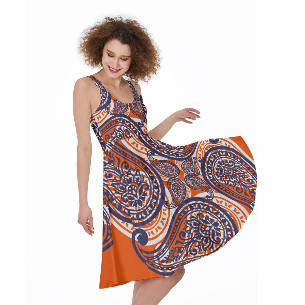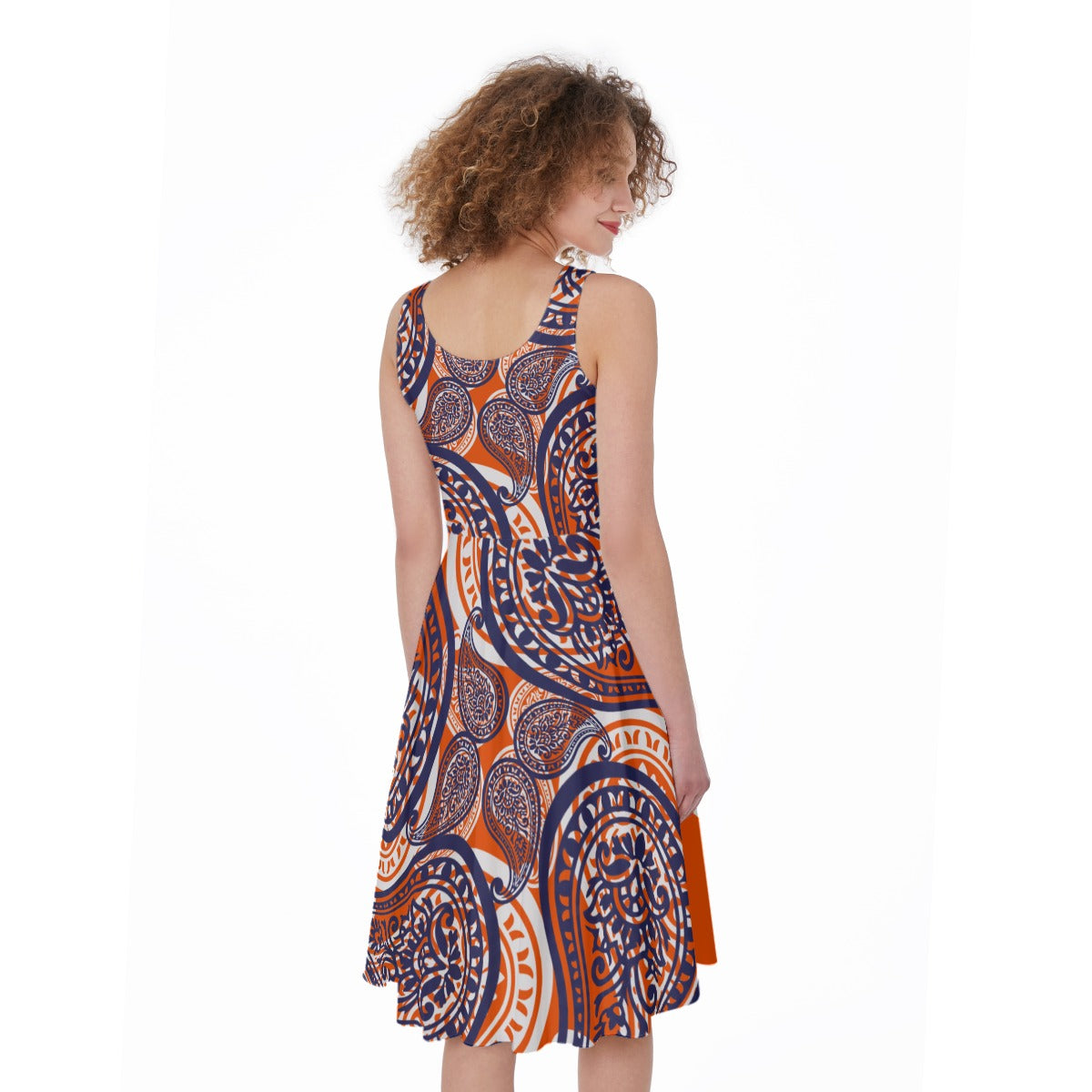Bright Orange Paisley Sleeveless Dress