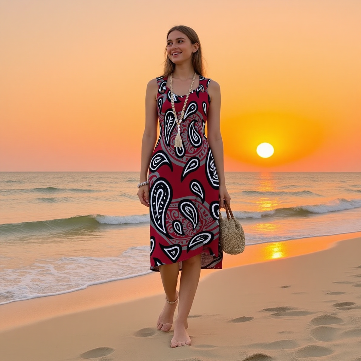Women's Maroon Paisley Summer Dress
