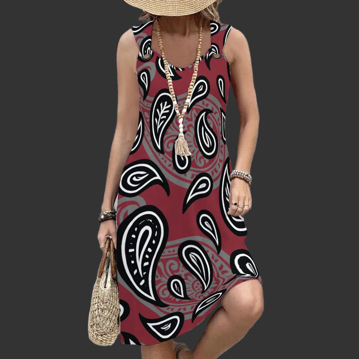 Turn heads in this Maroon Paisley Motif Sleeveless Summer Dress—a bold blend of striking bandana prints and sleek style. The sleeveless cut lets you show off your shoulders effortlessly, making a statement anywhere you go. Crafted from a durable polyester-spandex blend, it moves with you and handles whatever the day throws your way. Whether it’s for big meetings or nights out, this dress is made to shine. It’s vibrant, tough, and impossible to ignore. You’ll feel super confident and beautiful every time you step out in it.