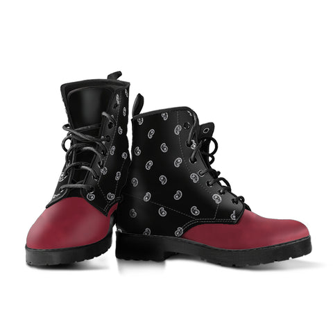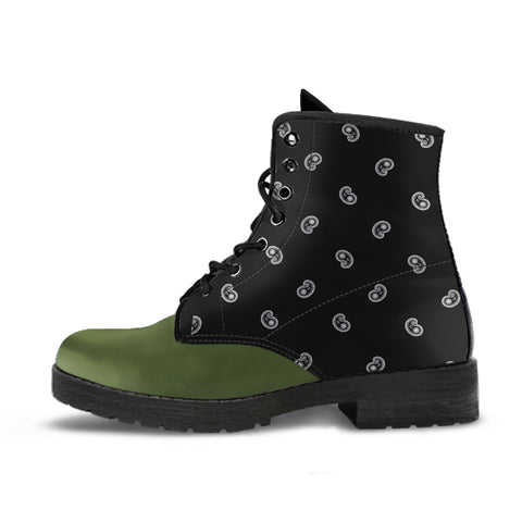 Sharp as a tack - That's what you'll be in The Bandana Blanket Company's Bold Stripe Army Green Leather Bandana Boot. You'll be showing out for sure, but our boots are not all about looks though, they are expertly crafted with faux leather and a striking bandana pattern. Made to be sturdy and safe with their slip-resistant and high-quality rubber soles. These boots will make them versatile for any occasion, whether it's a leisurely stroll or a busy day of errands. Choose from a range of stunning designs and step out in confidence with these bold and fashionable leather boots!