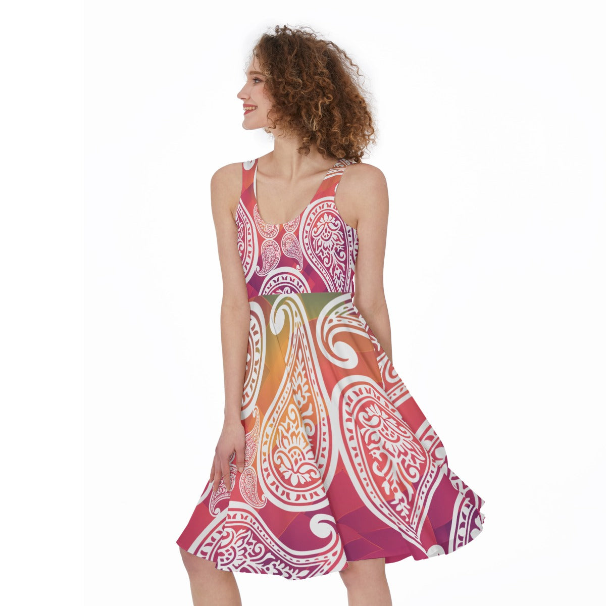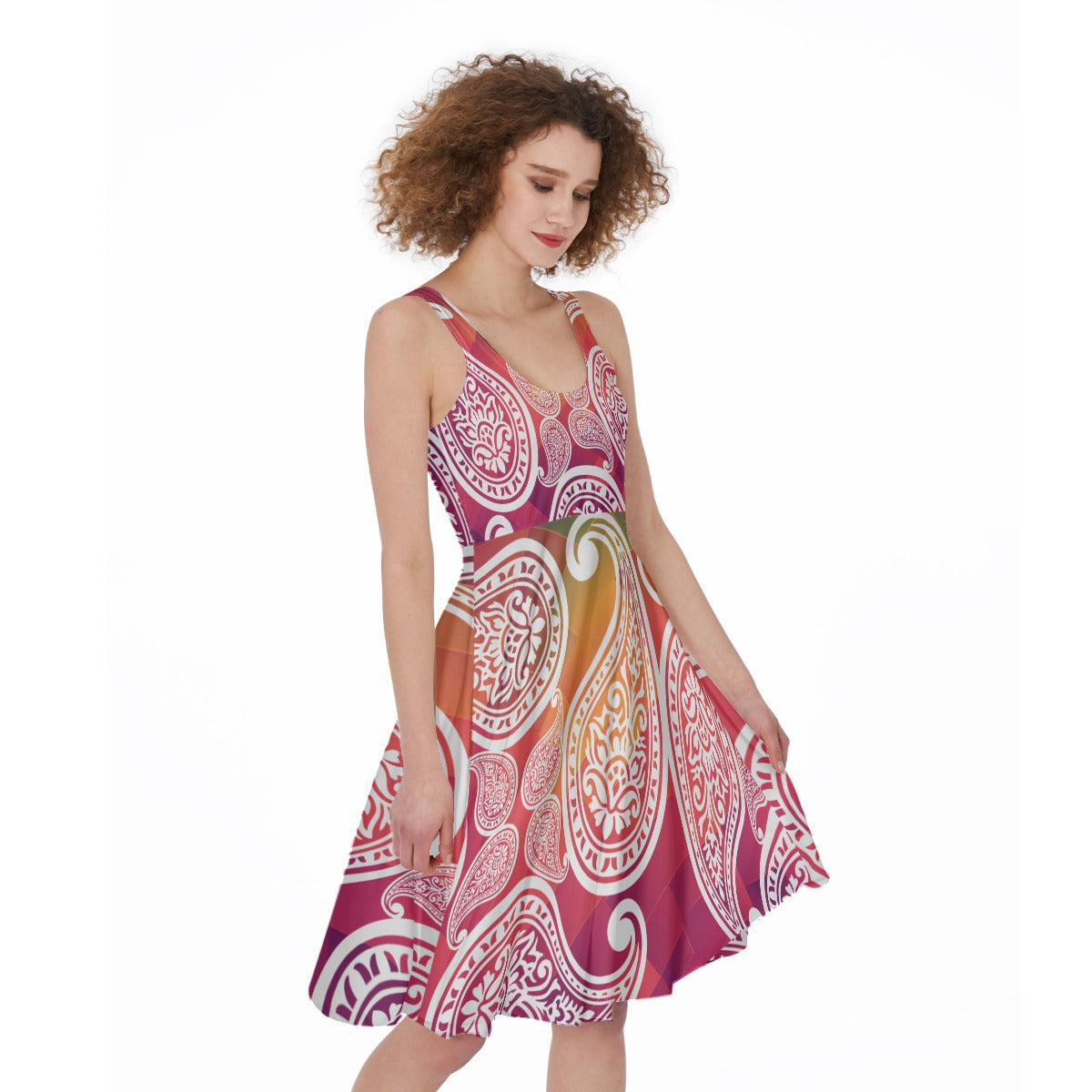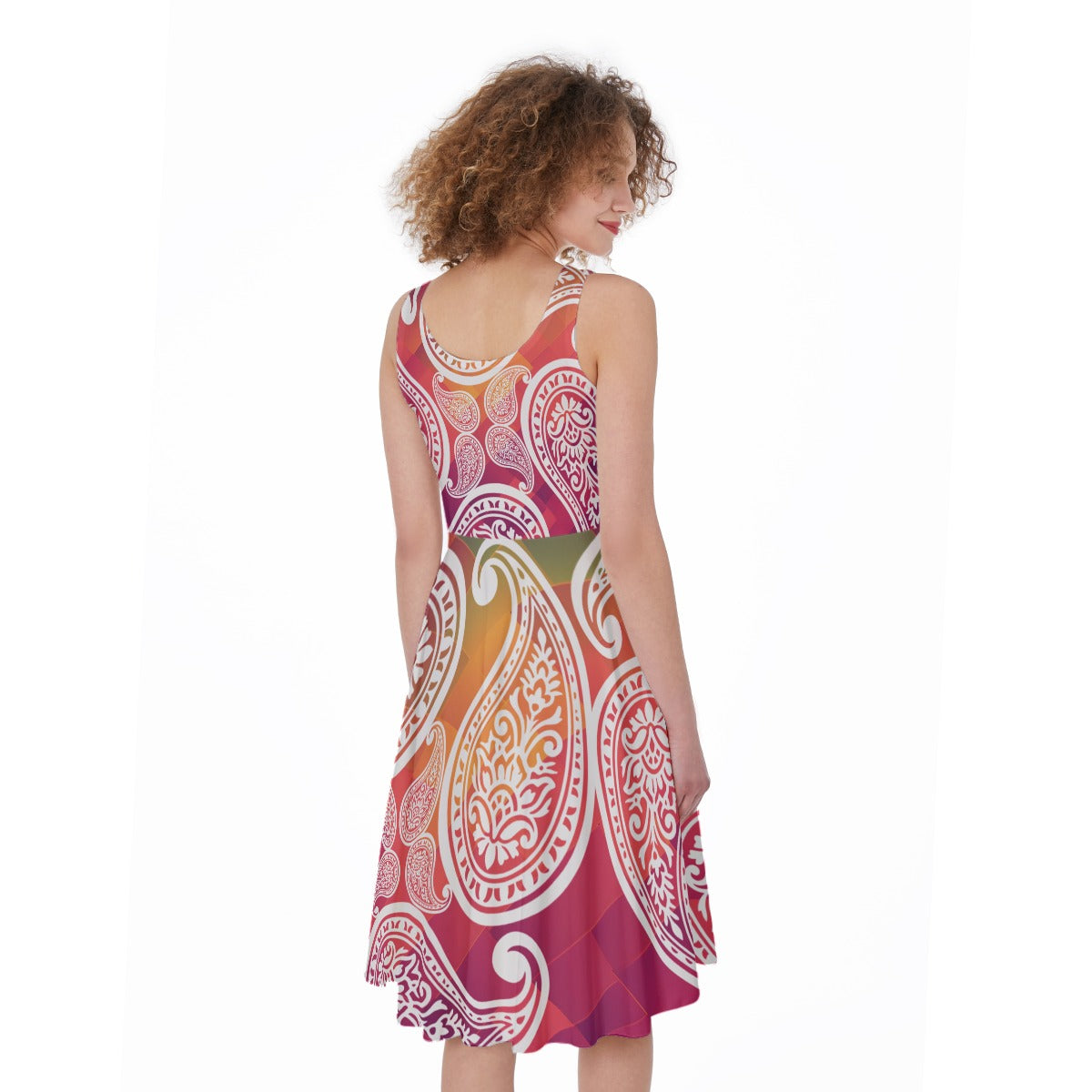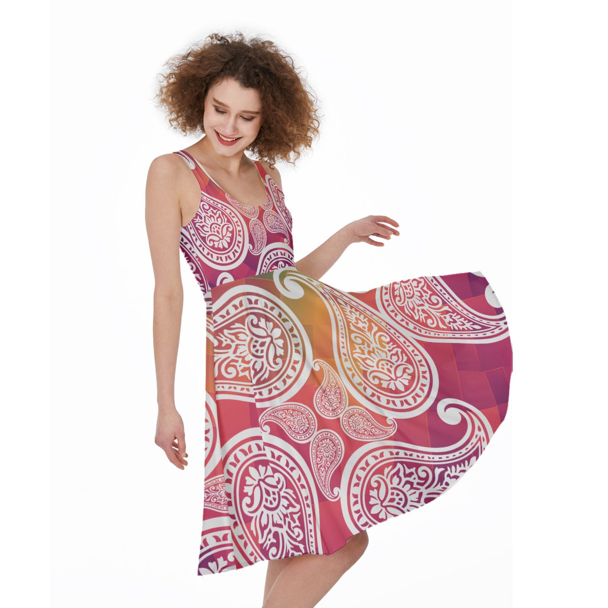 Stand out in this Colorful Paisley Sleeveless Dress, where fun bandana patterns meet fearless style. The sleeveless cut lets your confidence shine through! Made from a stretchy polyester-spandex blend, it's built to keep up with your lifestyle while staying comfortable all day long. Whether you're crushing it at work, grabbing coffee with friends, or dancing into the evening, this dress is your go-to for looking effortlessly put-together and undeniably you.