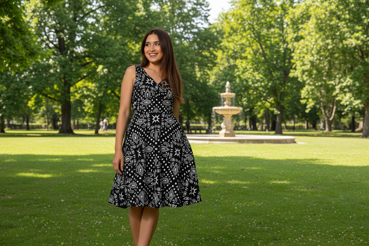Women‘s Black and White Cami Bandana Dress